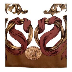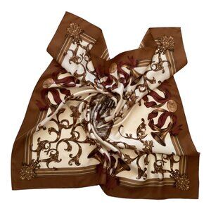 CHASSEUR PARIS Ivory Brown Hunting Print Scarf 35" SQR EX COND