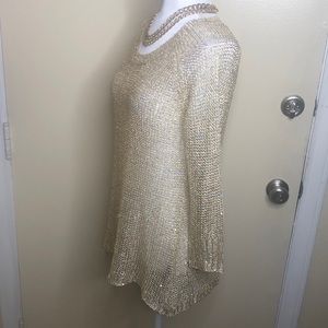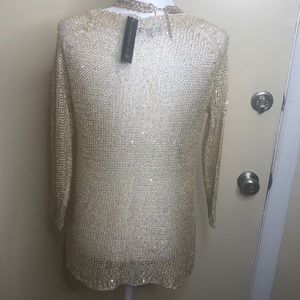 NWT CHAUDRY GOLD 3/4 SLEEVE SEQUIN SWEATER SIZE M