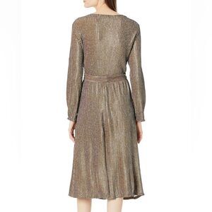 CHAUS Glimmery Tie-Waist Midi Dress - Size L Gold/Plum