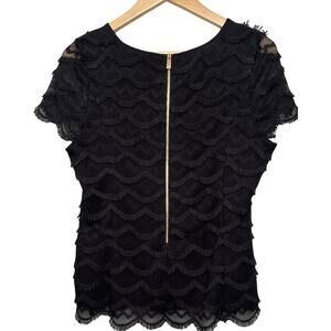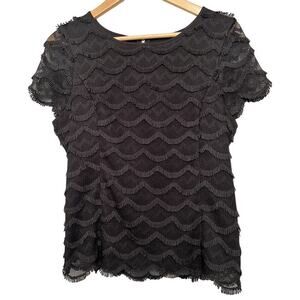 CHAUS New York Women’s Sz 8 Blouse Lined Mesh With Scalloped Fringe Party Career