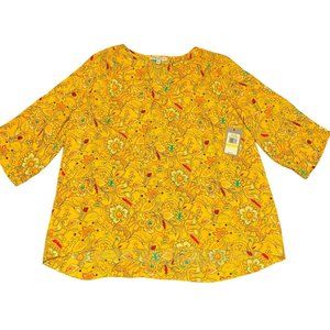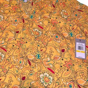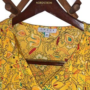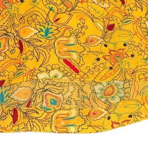 Yellow in color with beautiful flower print. Tie front and detail at shoulders.