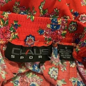CHAUS Sport Med Red Floral Retro Vintage Skirt Elastic Waist Pockets Small (f)