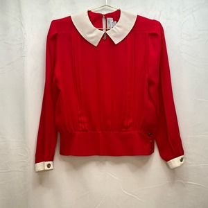 CHAUS // Vintage Red & Cream Blouse, Size 12