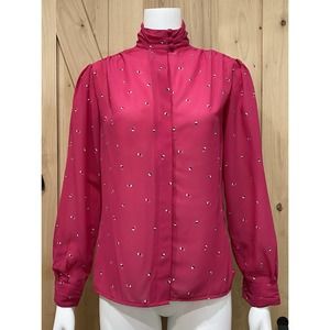 CHAUS WOMAN Fuchsia Chiffon Polyester High Collar Button Blouse Shirt Size 10