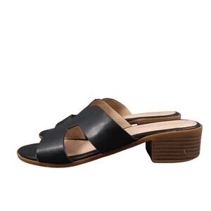 CHC Shoes Womens 37 Sandals Cut Out Slide Block Heel Open Toe Classic Black