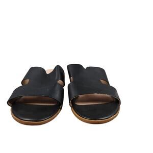 Used CHC Shoes Womens 37 Sandals Cut Out Slide Block Heel Open Toe Classic Black