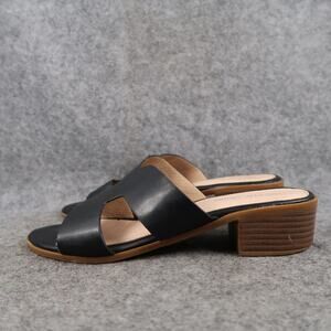 Used CHC Shoes Womens 37 Sandals Cut Out Slide Block Heel Open Toe Classic Black