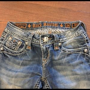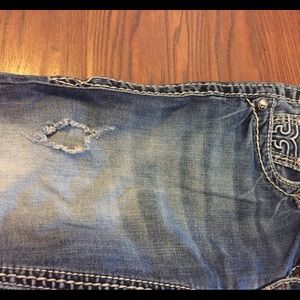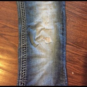 Really good condition there is one hole on the thigh and one hole in the knee that is patched up. Otherwise they are in great condition!!!!!!!!!