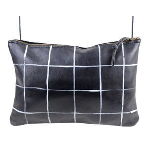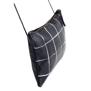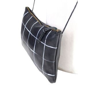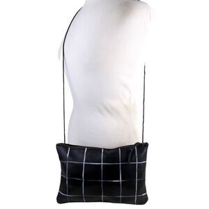 CHECK BLACK WHITE GENUINE LEATHER ZIP TOP SHOULDER BAG X-BODY HANDBAG PURSE