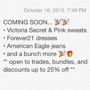 🎉 The next few days I'll be adding a bunch more items! everything is negotiable and I'm giving discounts up to 25% off. guaranteed next day shipping Monday-Friday! 🎉