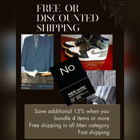 Free or discounted shipping in all MEN CATEGORY items Bundle and save 15%