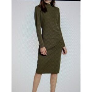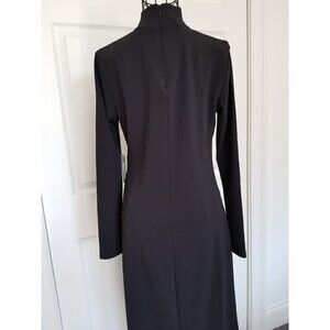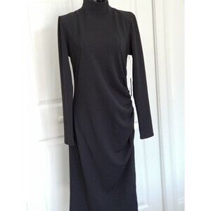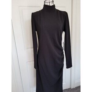 CHELSEA 28 Black Long Sleeves Mock Neck Ruched Bodycon Midi Dress Womens Sz (S)