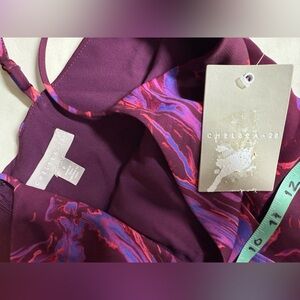 Purple abstract print surplice spaghetti strap midi dress from CHELSEA 28, size S.