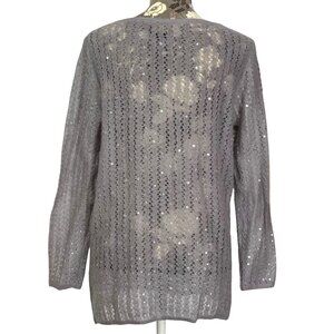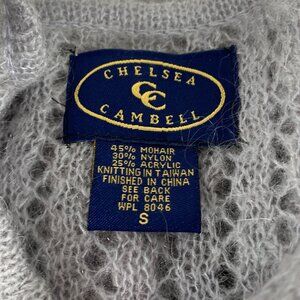 CHELSEA CAMBELL Mohair Blend Sheer Sequins Sweater Side Slits Boat Neck SIZE S