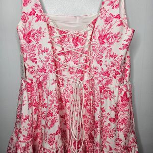 New with tag! CHELSEA REECE Madonna Dress. Size 16/18. Countryside Pink Floral Print. Fit & Flare Style. Lined. Side Zip Closure. Corset Back. Hand Pockets. MSRP $263