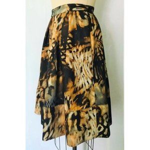 CHELSEA & THEODORE BROWN GRAY MUSTARD ABSTRACT WATERCOLOR FULL SKIRT 12