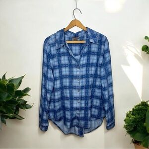 CHELSEA & THEODORE • Plaid V Neck Collard Button Down Button Back Blouse