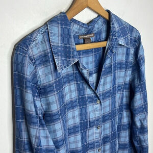 CHELSEA & THEODORE Plaid V Neck Collard Button Down Button Back Blouse