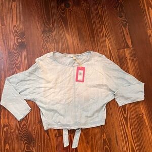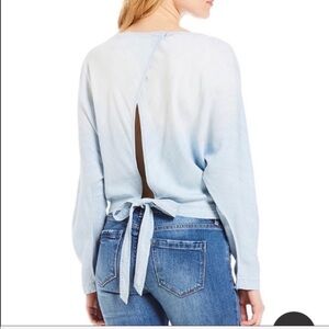 BNWT CHELSEA & VIOLET darling ombré chambray long sleeve denim top with open back and ties to make a bow at the back of the waist!
