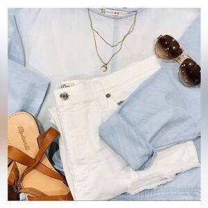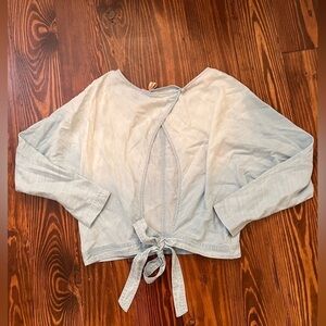 BNWT CHELSEA & VIOLET darling ombré chambray long sleeve denim top with open back and ties to make a bow at the back of the waist!