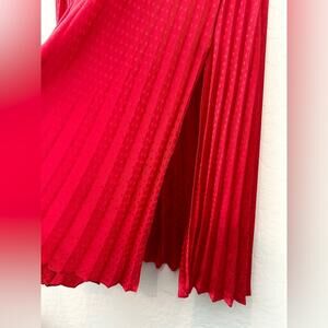 Chelsea & Violet Bright Red Pleated Monochrome Polka Dot Side Slit Midi Skirt!