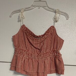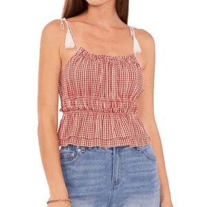 CHELSEA & VIOLET SLEEVELESS RED GINGHAM BLOUSE MEDIUM
