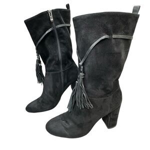 CHELSEA & ZOE Black Mid High Heeled Boots Size 8