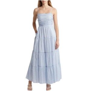 πβ CHELSEA28 Blue White Stripe Maxi Dress | Preppy Fall Academia Stripe Chic M