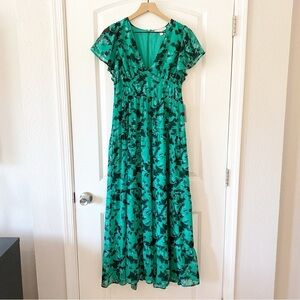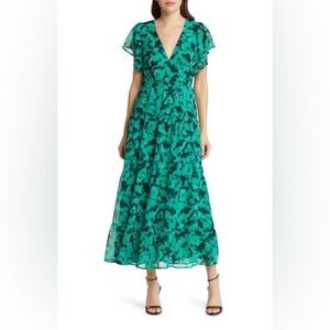 CHELSEA28 Floral Flutter Sleeve Tiered Chiffon Maxi Dress NWT Small