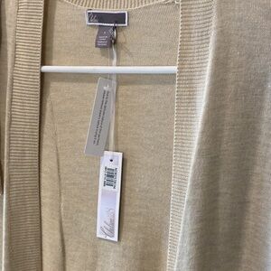 NWT - delicate and sweet open front cardigan! The over the shoulder ruffle adds a fun detail to just a regular cardigan! Beige in color and two front pockets.