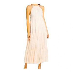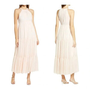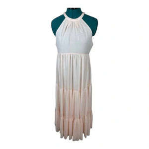 CHELSEA28 TIERED FAUX Chiffon ROMANTIC Prairie MAXI DRESS NWOT