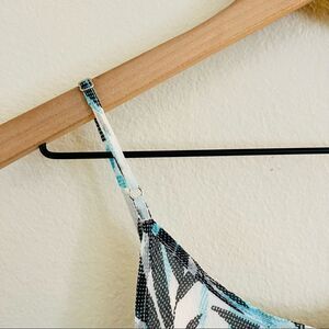 Chelsea28 Blue/Black/White Mesh Leaf See Through Halter Top Tank Top. Size Small. Previously loved, no flaws or signs of wear.