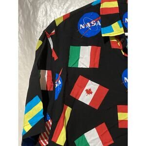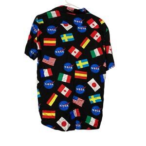 CHEMISTRY NASA Country Flags All Over Print Button Up Shirt sz Medium