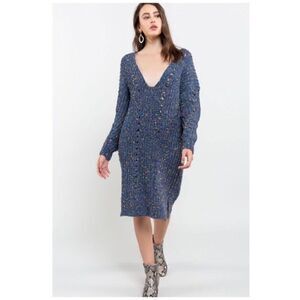Our favorite "CONFETTI" inspired chenille sweater dress featuring long sleeve; low V neck on both front & back; twisted cable detailing on body with small slit on side of the hem