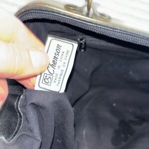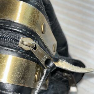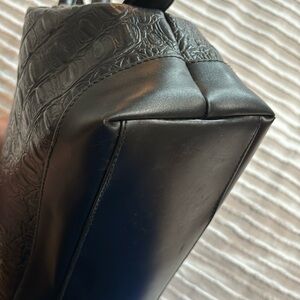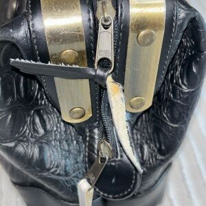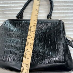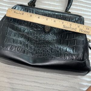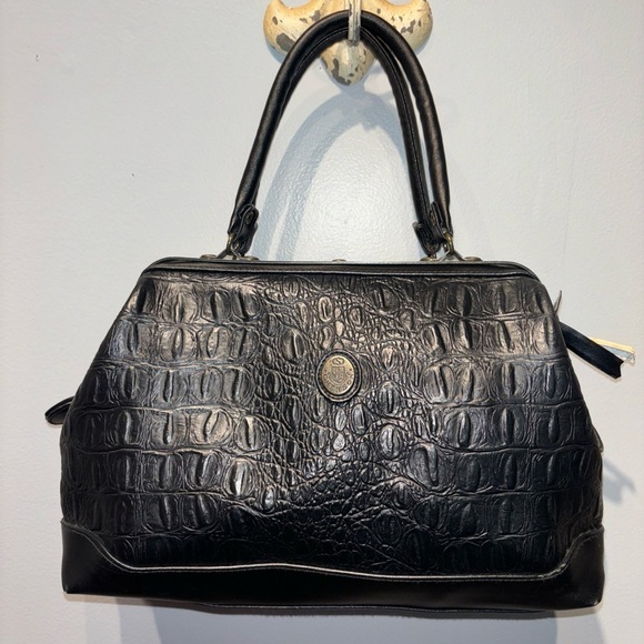 CHENSON Black Croc Pattern Faux Leather Doctor Satchel Purse Bag Brass Trim