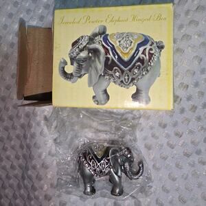 CHERISHED TREASURE JEWELED PEWTER ELEPHANT HINGED TRINKET BOX