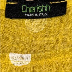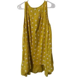 Embrace a relaxed summer vibe with this Cherish tank top, featuring a vibrant yellow hue adorned with delicate white patterns. The sleeveless design and asymmetrical cut offer a breezy, comfortable fit perfect for casual outings. Crafted with a light and airy fabric, this top ensures you stay cool and stylish all day long. I can't find a size on this dress but I'm going to do measurements. It's looks like maybe medium.