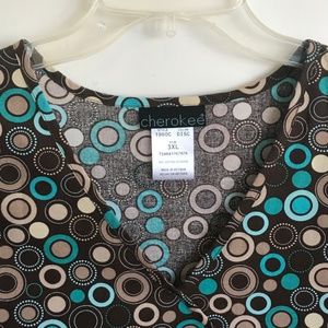 CHEROKEE 100% Cotton Scrub Top Retro Dot Brown Blue Women’s Plus Size 3X