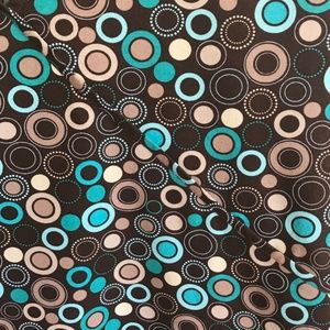 Colors : Brown background with Teal, Turquoise, Taupe, Tan and Ecru