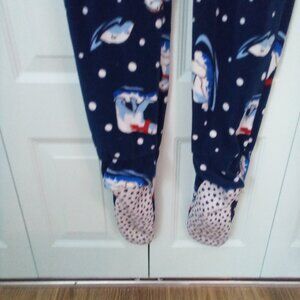 CHEROKEE L (12-14) NAVY FLEECE FOOTIE PAJAMAS POLAR BEAR FULL ZIP SLEEPER COZY warm.