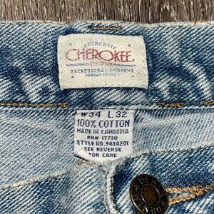 CHEROKEE Men's Jeans 34x32 Blue Straight Leg Light Wash Distressed Vintage