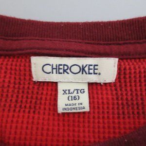 CHEROKEE Waffle Top XL (16) Red Buffalo Plaid Pullover 100% Cotton Long Sleeve
