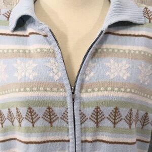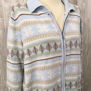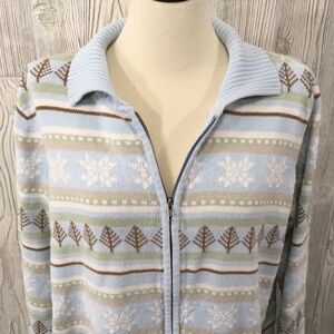 CHEROKEE Winter Snow Holiday Zip Sweater 14W/16W Plus Size Light Blue