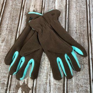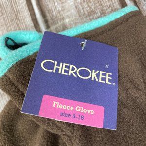 CHEROKEE Youth Girls 8-16 Brown Aqua Fleece Winter Gloves 100% Polyester NWT NEW