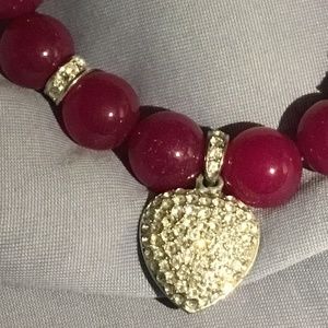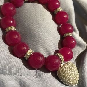 CHERRY AGATE AND RHINESTONES STRETCHY STATEMENT BRACELET