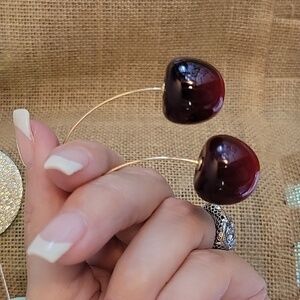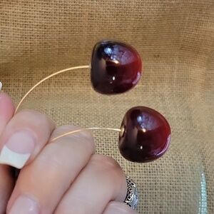 An Anthro Bestseller.. weighted resin cherries with 14k goldplated stems that are secured into the top of the fruit (thus, these are considered backless). Super comfortable!