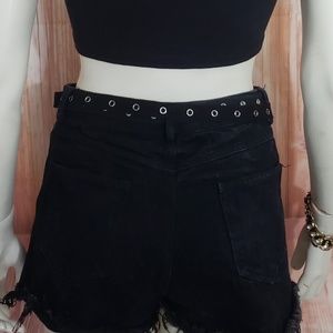 CHERRYBOOM STUDIO BLACK DISTRESSED DENIM SHORTS M