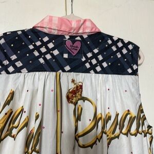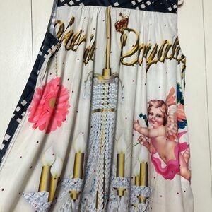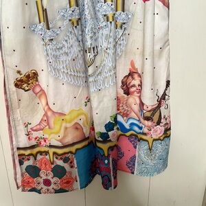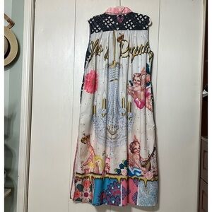 Beautiful duster, the front is plaid and the back has beautiful Cherubs. Snaps up the front with pockets. This is from a boutique and is new without tags.