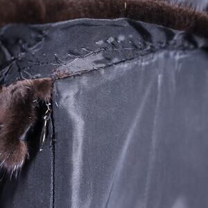CHETTA B Evening Fur Trim Satin Slip Long Dress Black Strap Lined Women's 8