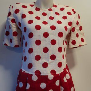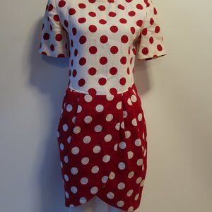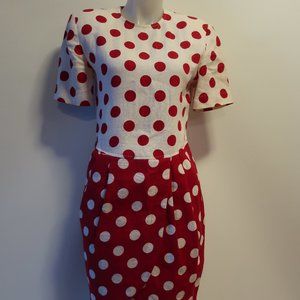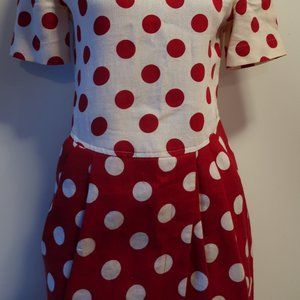 CHETTA B PETER NOVIELLO SHERRIE BLOOM RED OFF-WHITE POLKA-DOT DRESS 8 *